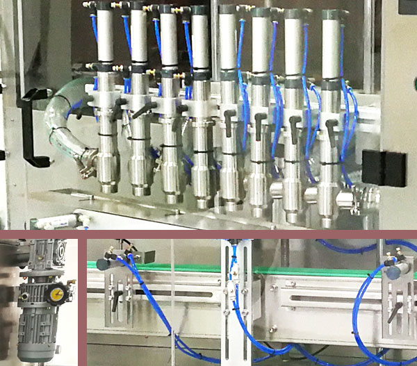 5、灌装头配置日本松下光电系统,能准确识别灌装瓶定位状况,实现有瓶灌装、无瓶少瓶不灌装。